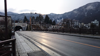 We walked across the bridge and took pictures of the river below. There are a lot of onsen hotels lining the cliffs above the river, and they look pretty cool. As we stood there talking and looking at the river and the mountains all coming together in a beautiful panorama, we dropped rocks from the bridge into the river. It was such a simple thing, but it’s pretty fun.